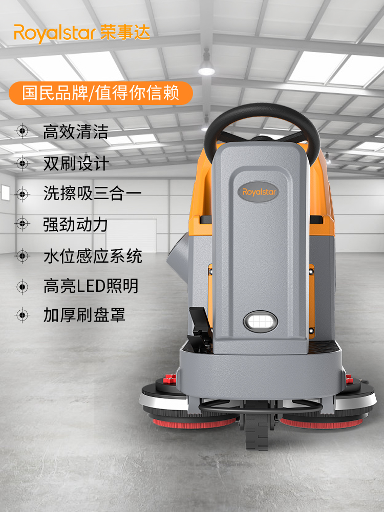 駕駛式洗地機RS-D85:這款駕駛式掃地機是洗刷吸三合一產品,清潔更高效,還擁有雙刷配置,清潔地面更快捷,工作效率每1小時可以清潔4000㎡左右